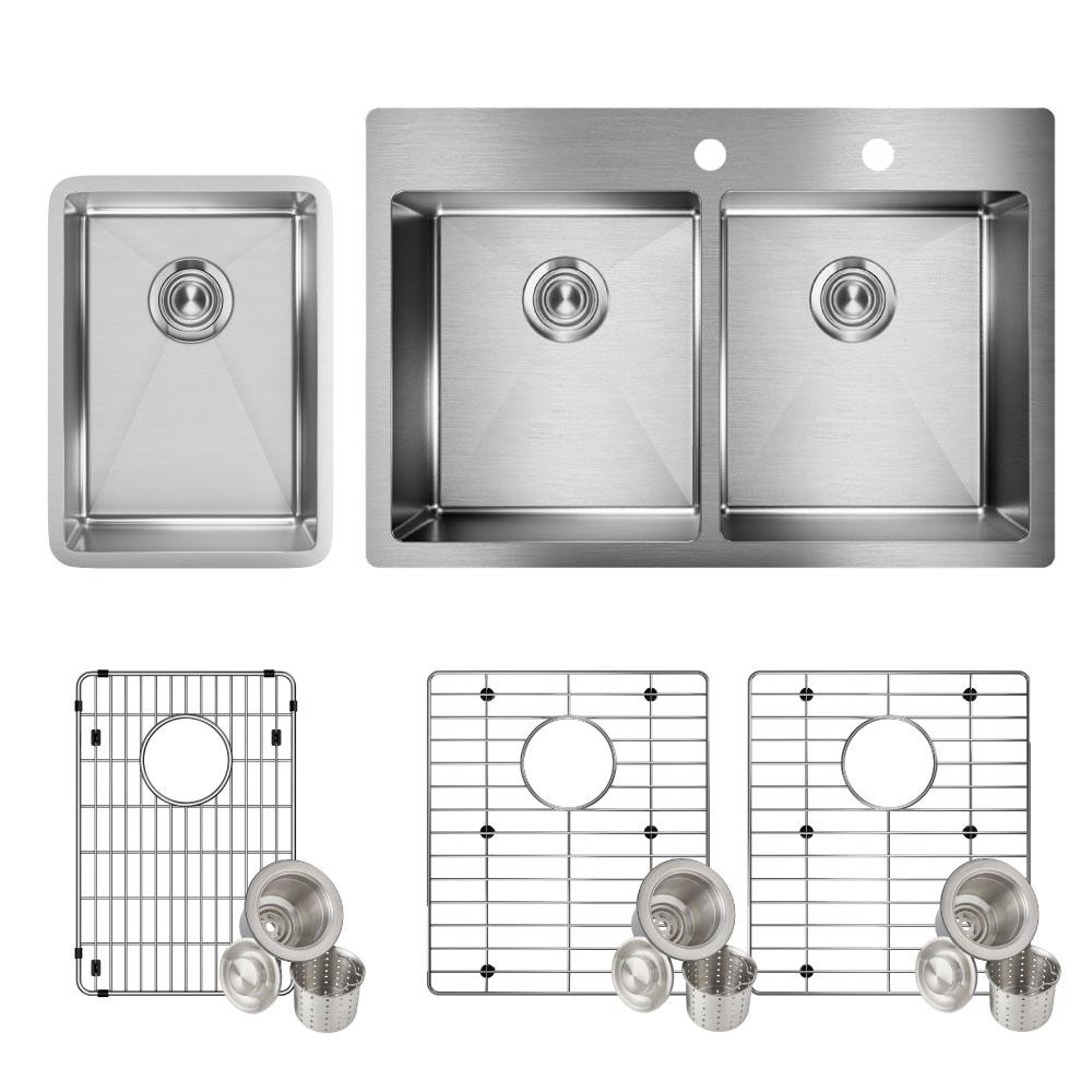 369.95 USD. Removable stainless steel soap dispenser plug included A Great Replacement Sink: Easy-to-install drop-in sink designed with standard 33-inch by 22-inch dimensions to fit in most existing cut-outs Ultra-Convenient Self-Rimming Design: Cuts down on installation time and allows for secure... Most stainless steel sinks have a brushed finish.[2] X Research source Wipe parallel to the brush lines to reduce the chance of a visible scratch. To add even more shine to a dull sink, try buffing it with a soft cloth and 3 drops of olive oil. Once the entire surface is very lightly coated, rub the oil in